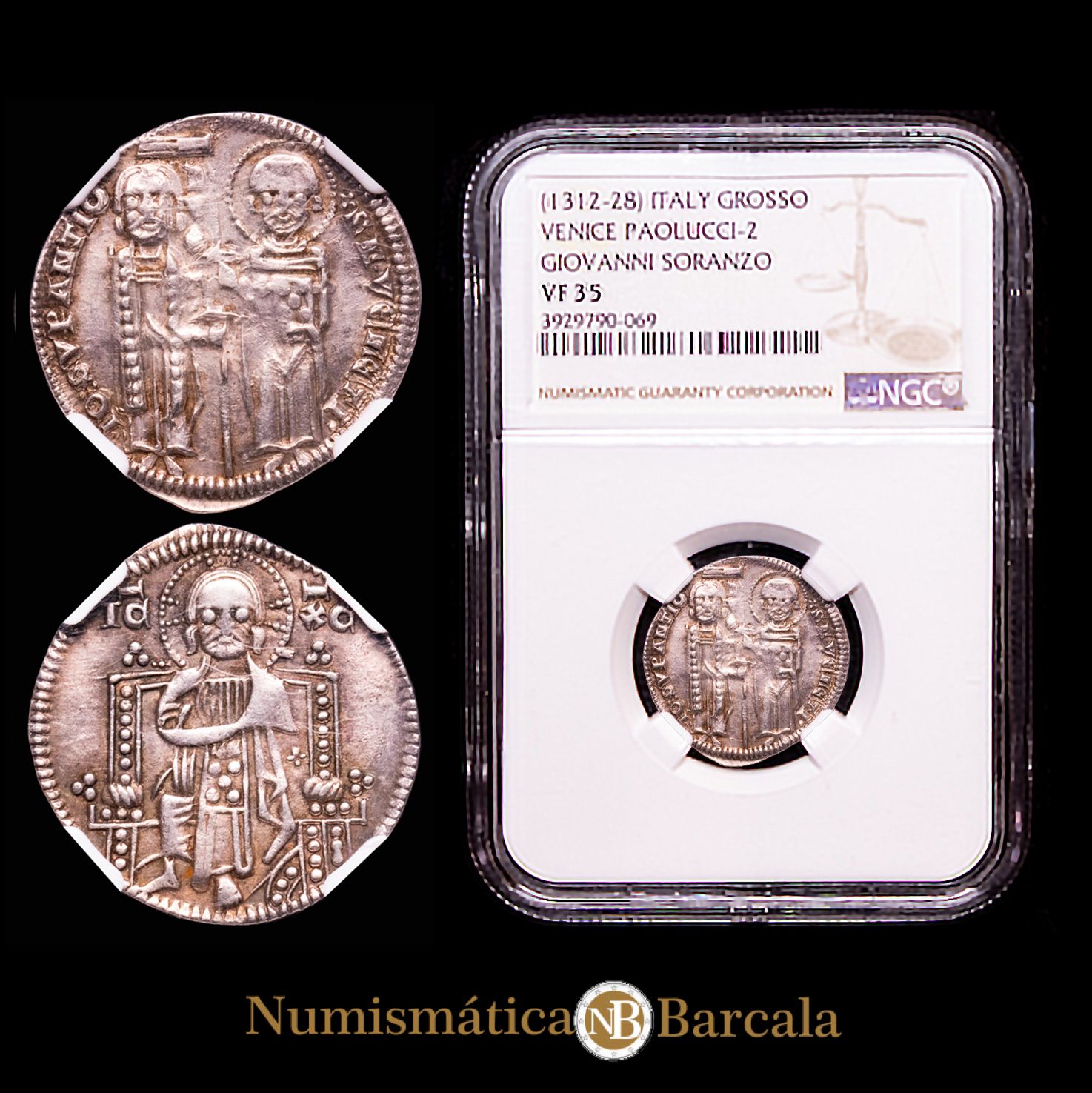 Italia. Grosso Venice (1312-28) Paolucci-2 Giovanni Soranzo Encapsulada por la NGC VF35.